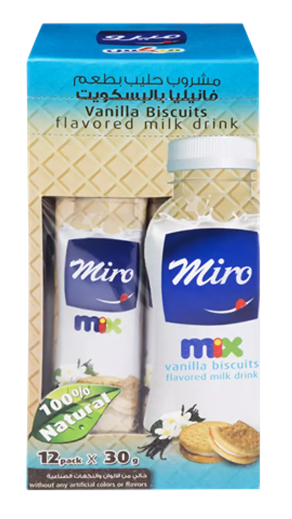 علبة ميرو ميكس حليب بودرة بنكهة فانيليا بالبسكوت 12 ظرف